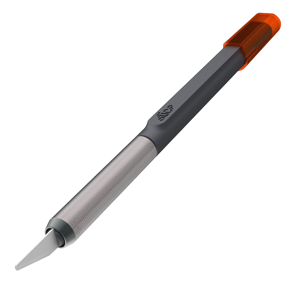 Slice 10589防丟刀蓋型陶瓷刀片安全工藝刀,有著它獨特巧妙地刀柄設計,您將再也不怕搞丟保護刀蓋。要露出刀片,請先擰開刀蓋將其解鎖,接著將其刀蓋沿著刀柄向下滑動并再次擰緊,使其不會影響到您工作。