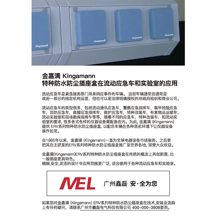 自1985年以來,金嘉滿Kingamann一直為全球電器設(shè)備市場服務(wù)。之后更把其自主研發(fā)的ERV系列特種防水防塵插座盒推廣至世界各地, 深受大眾歡迎。