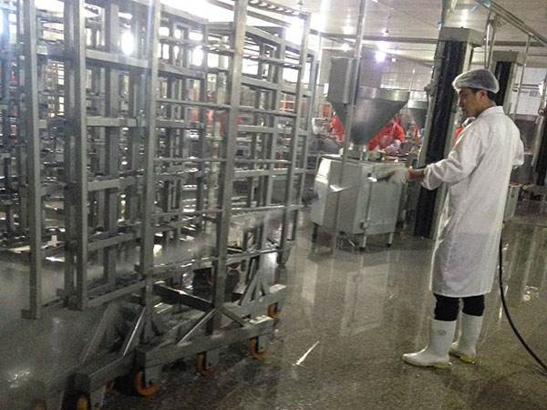 車間內(nèi)的操作臺、傳送帶、運(yùn)輸車、工器具應(yīng)當(dāng)用無毒、耐腐蝕、食品級、不生銹、易清洗消毒、堅固的材料制作。
