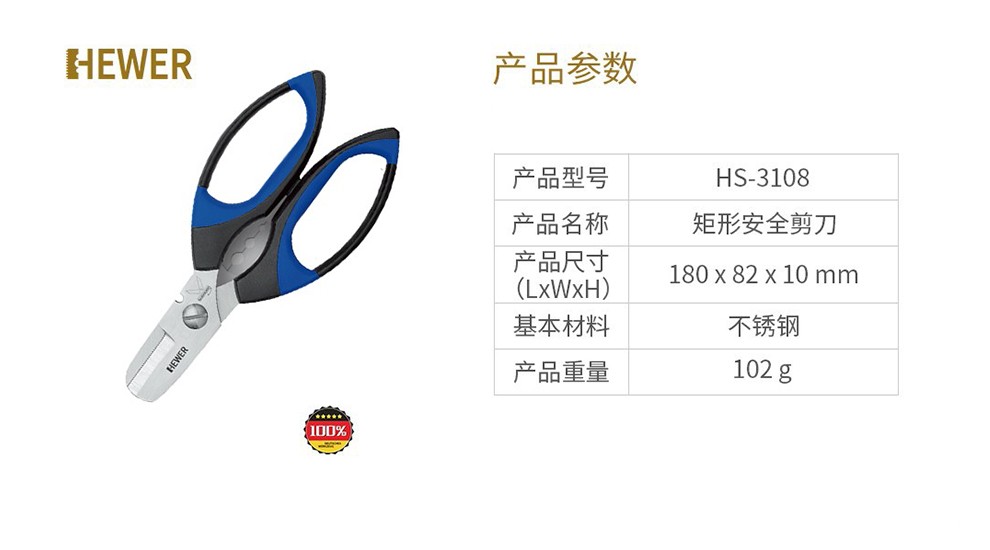 HEWER MultiCUT HS-3108包裝扎帶安全剪刀適用于切割各種材料的扎帶,如聚丙烯,扁平尼龍和聚酯;刀片的涂層比鋼硬三倍,持久耐用;鋸齒刀片切割時(shí)可將材料固定到位;