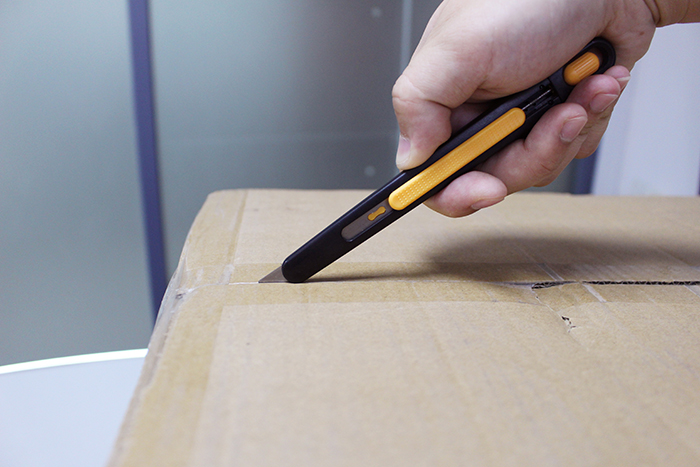 5. 完成修邊作業(yè)后,放松握緊安全刀具的掌心及讓刀片慢慢地自動回彈到刀柄內(nèi)。